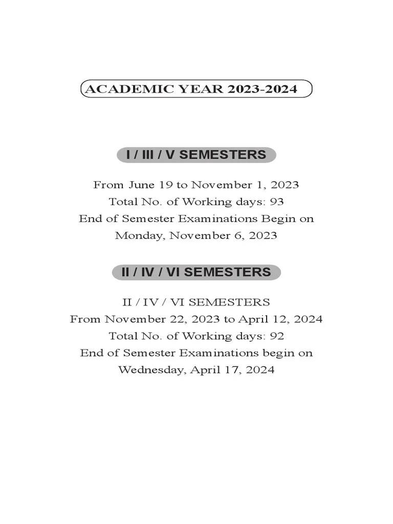 MCC Calendar 20232024 Odd Semester PDF Academic Term Business